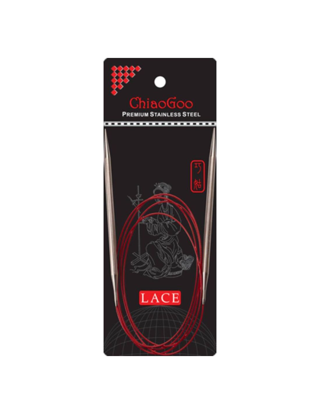 Les aiguilles circulaires fixes «RED Lace» Chiaogoo sont fabriquées en acier chirurgical. Légères, solides et inoxydables, elles sont douces au toucher et leur finition satinée anti-reflet vous apportera un confort et une précision de tricot incomparable.