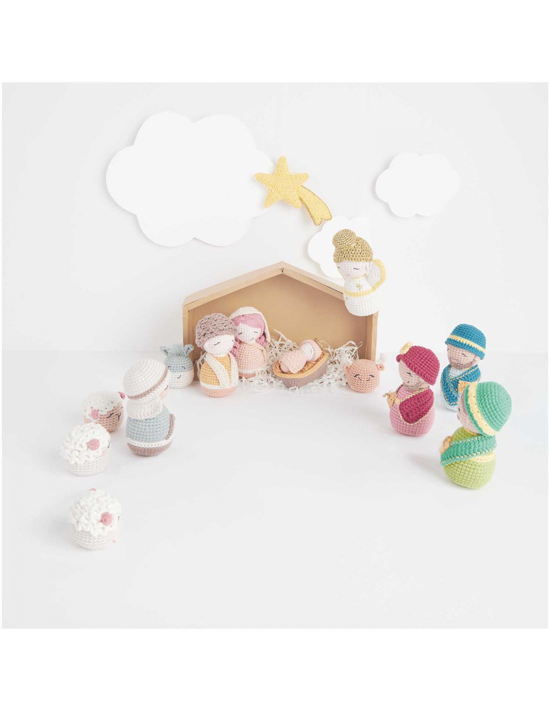 Kit contenant tout le nécessaire pour crocheter la crèche de noël à retrouver ici.