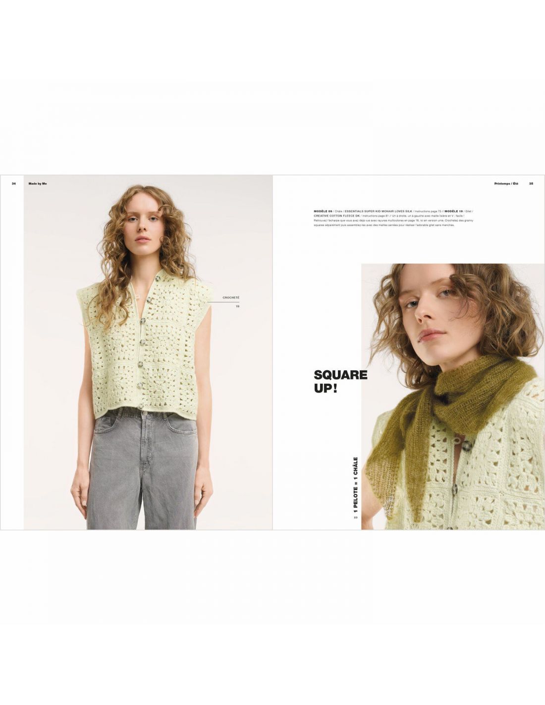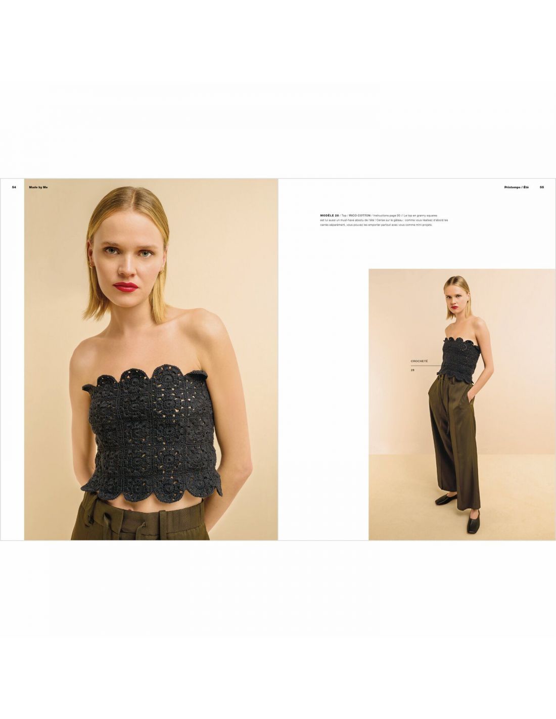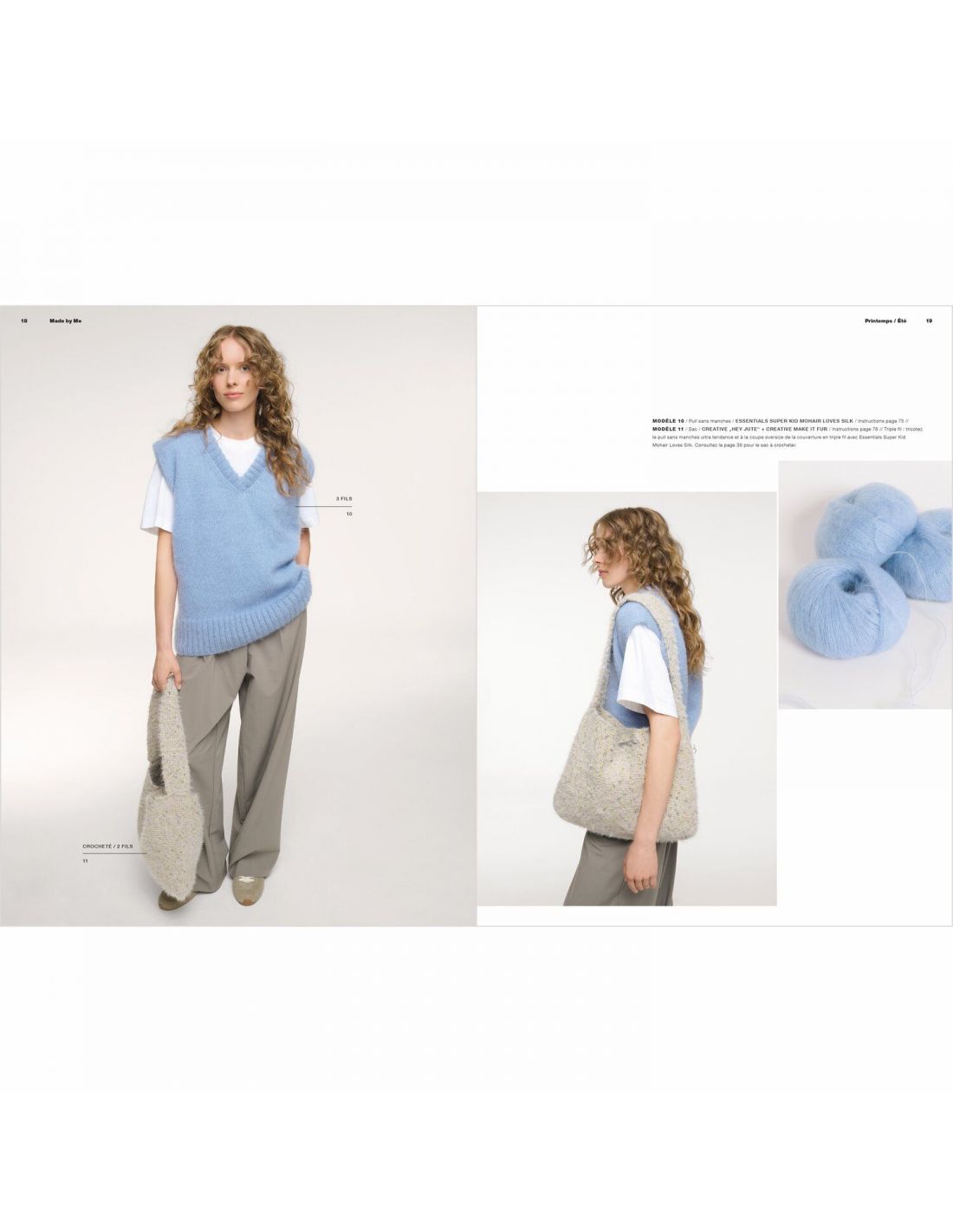 Dans le numéro estival Made by Me No. 22, de beaux modèles à tricoter et à crocheter sont présentés. Des tops, des chemises, des foulards, des sacs et bien d'autres articles sont déclinés dans des couleurs estivales fraîches telles que le bleu azur, le jaune et différentes nuances de vert, rehaussées de quelques touches de noir audacieuses. Des fibres naturelles et estivales, telles que le coton, la soie et le jute, sont associées à divers fils d'accompagnement.