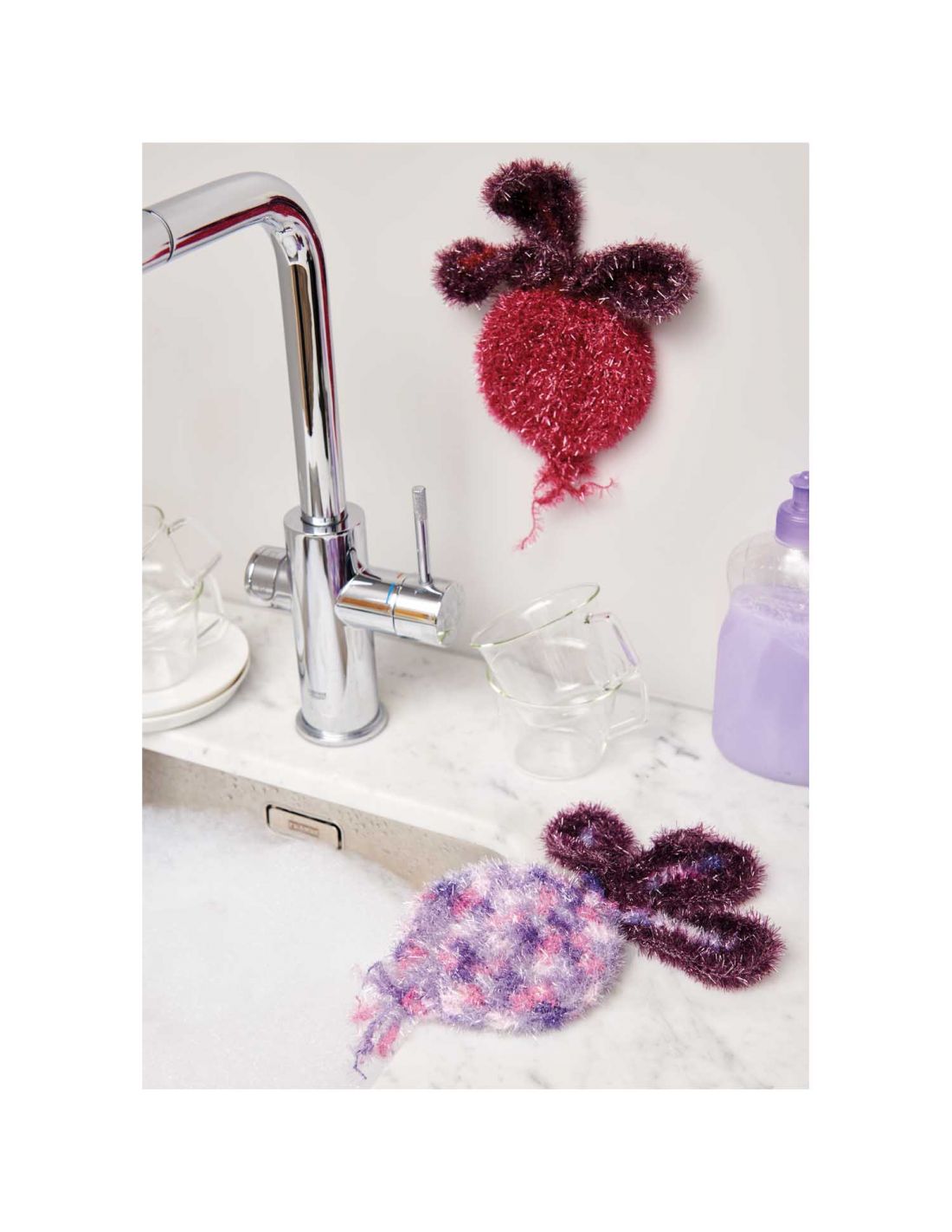Pelote Creative Bubble. Cette gamme proposet des fils à la propriété abrasive qui permettent de crocheter ou tricoter des éponges pour la vaisselles ou même le corps, encore appelé Tawashis, qui sont home made, lavables et donc réutilisables.