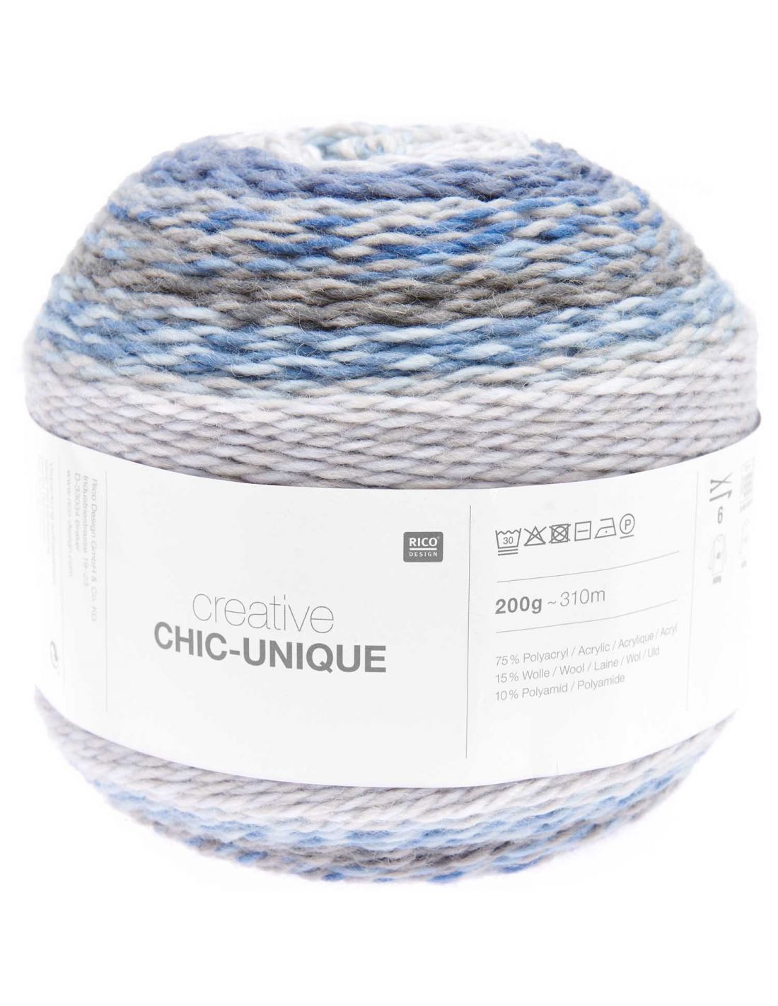 Creative Chic Unique réunit deux fils avec des dégradés différents qui se combinent pour créer un mélange de couleurs surprenant. Comme la longueur de chaque séquence de couleurs varie et que des teintes toujours différentes se rencontrent dans la torsion, chaque pelote et chaque pièce tricotée avec ce fil sont uniques. Sa palette regroupe des couleurs expressives.