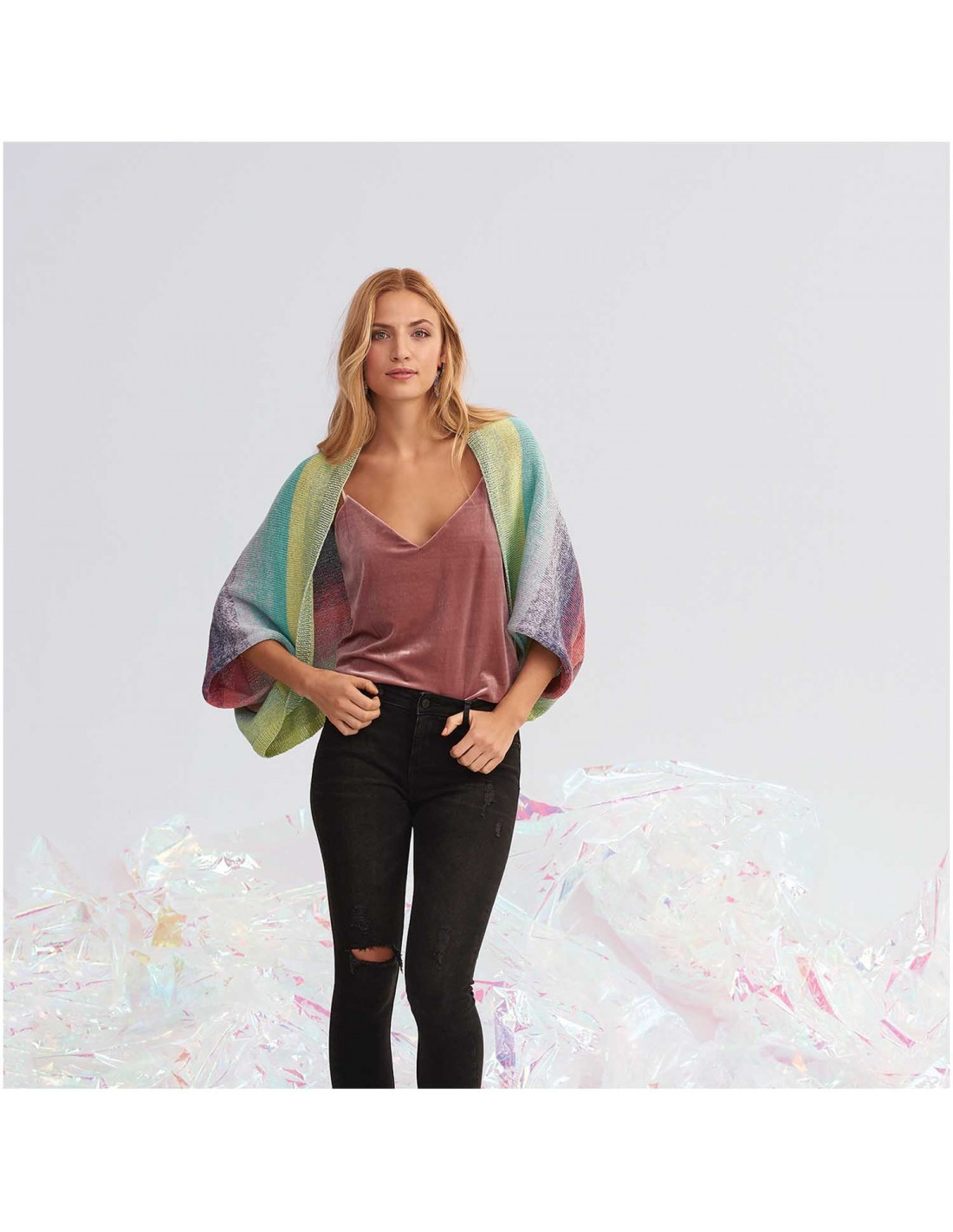 Le truc en plus : à l’intérieur de la banderole on trouve des instructions détaillées pour réaliser un cache-nez triangulaire stylé et aux beaux dégradés qui donnent envie de se lancer immédiatement dans le tricot. Pour cette pièce aux dimensions de 65 x 170 cm on a tout juste besoin d’une pelote de 200 g. Ce mélange de coton de haute qualité est présenté dans une belle banderole aux éléments dorés brillants marqués à chaud.