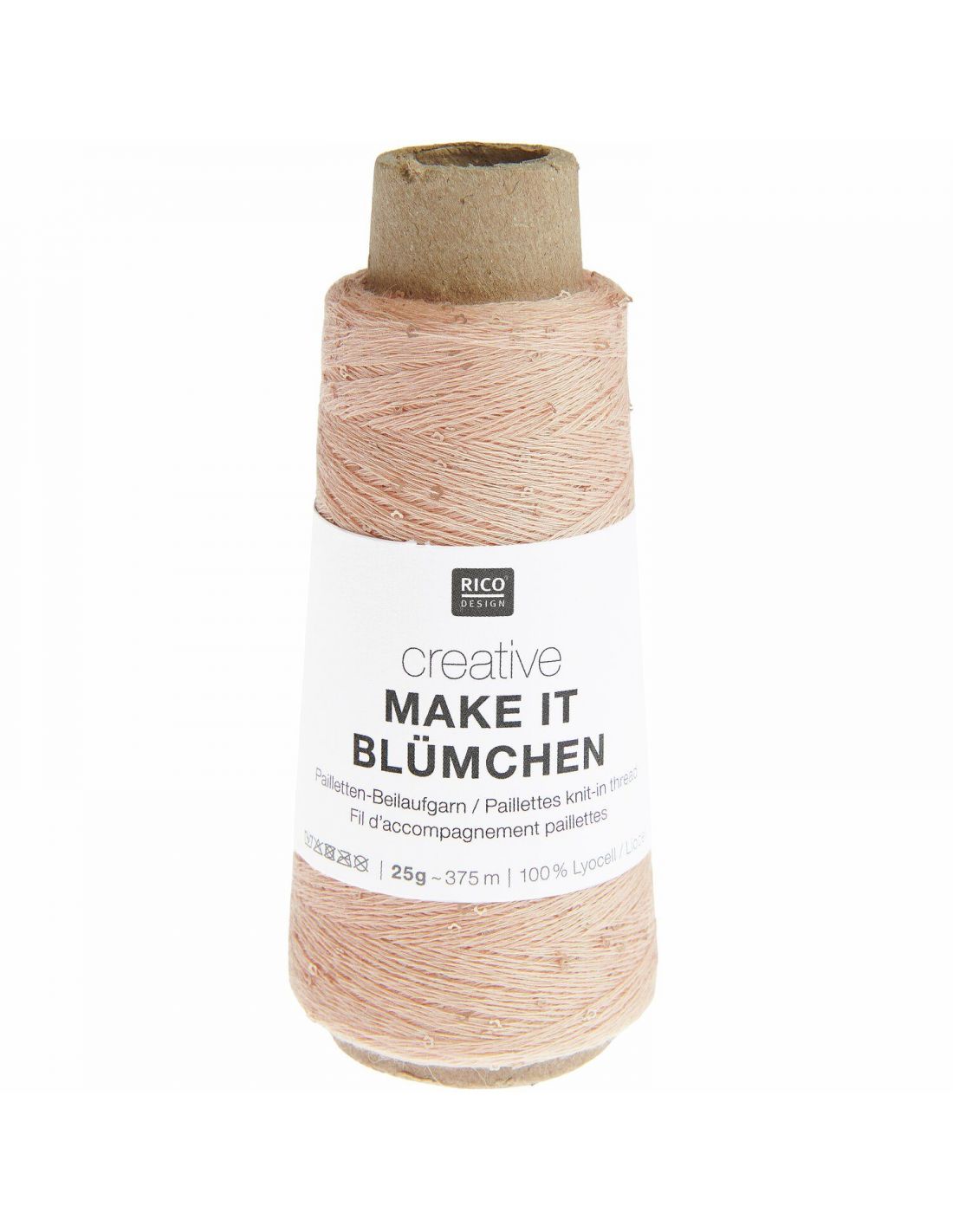 Le fil d'accompagnement Creative make it Blümchen scintille de paillettes en forme de petites fleurs. Dans le fil porteur 100% lyocell, de petites fleurs sont intégrées sous forme de paillettes, dont la couleur est assortie au fil. Il suffit de tricoter ce fil d'accompagnement étincelant avec le fil principal pour donner un effet captivant.