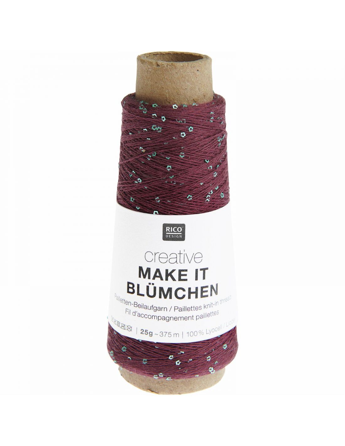 Le fil d'accompagnement Creative make it Blümchen scintille de paillettes en forme de petites fleurs. Dans le fil porteur 100% lyocell, de petites fleurs sont intégrées sous forme de paillettes, dont la couleur est assortie au fil. Il suffit de tricoter ce fil d'accompagnement étincelant avec le fil principal pour donner un effet captivant.