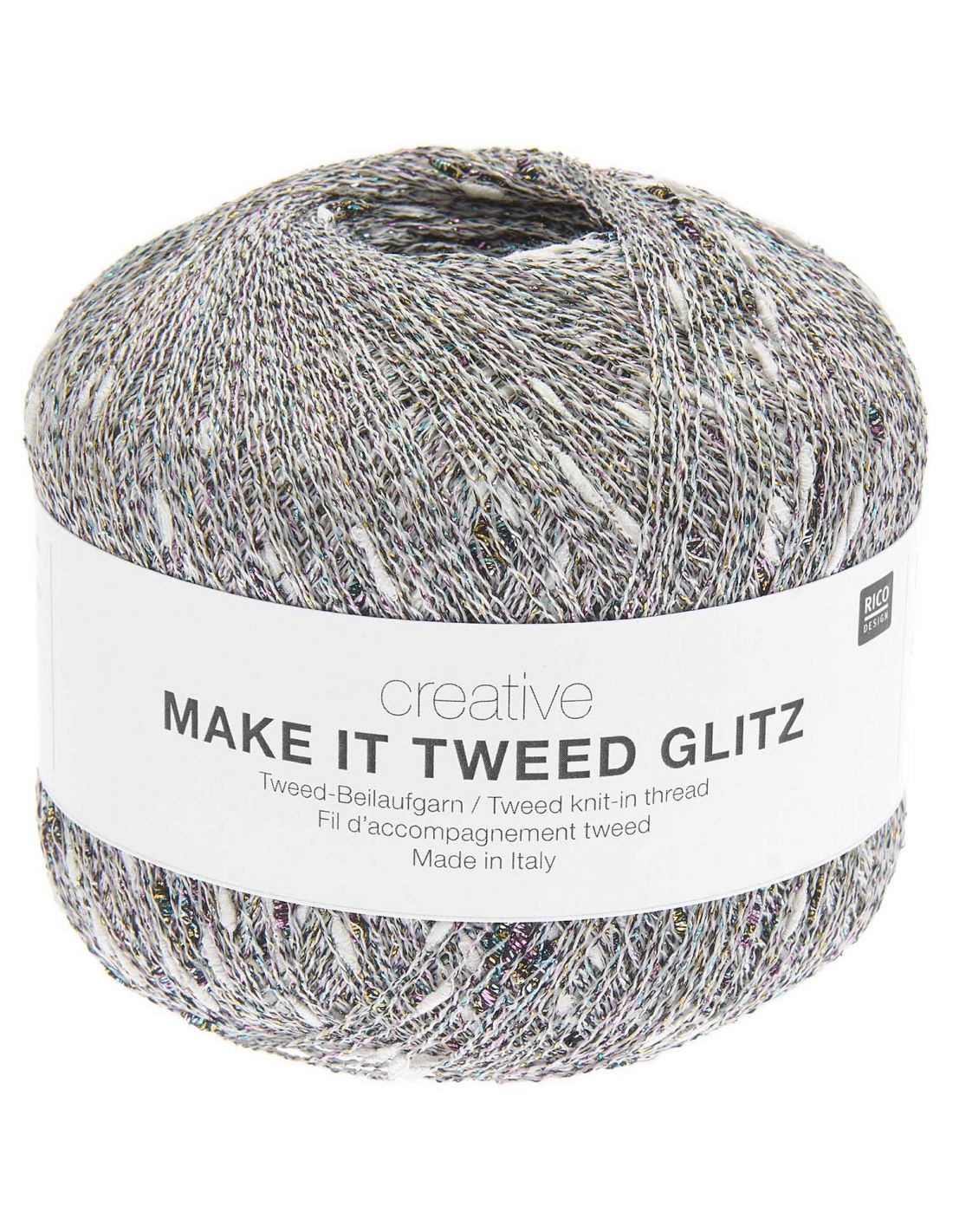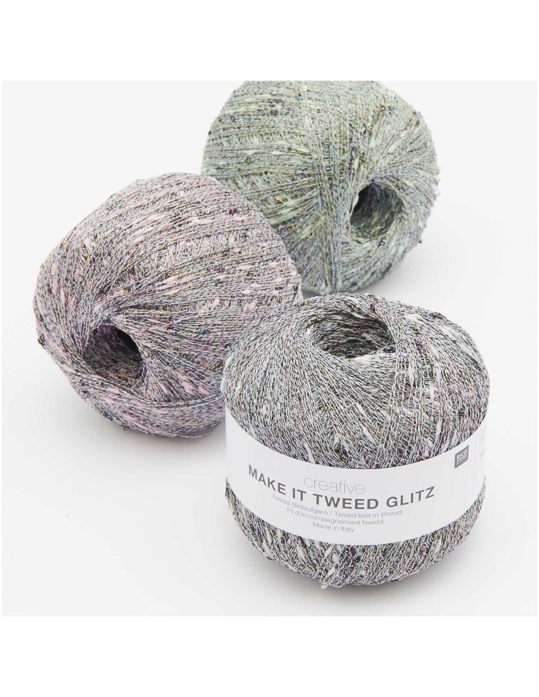Creative make it tweed glitz transforme ajoute une touche coloré et brillante à vos tricots. il suffit de tricoter ce fil multicolor en même temps que le fil principal pour que vos ouvrages se parent de notes aux couleurs de l'arc-en-ciel scintillantes