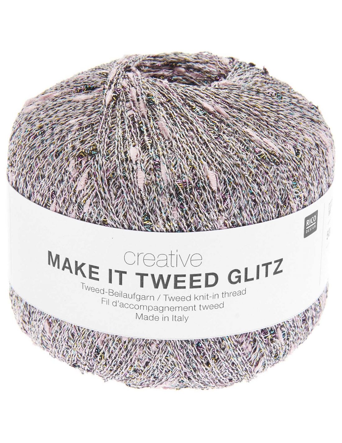 Creative make it tweed glitz transforme ajoute une touche coloré et brillante à vos tricots. il suffit de tricoter ce fil multicolor en même temps que le fil principal pour que vos ouvrages se parent de notes aux couleurs de l'arc-en-ciel scintillantes
