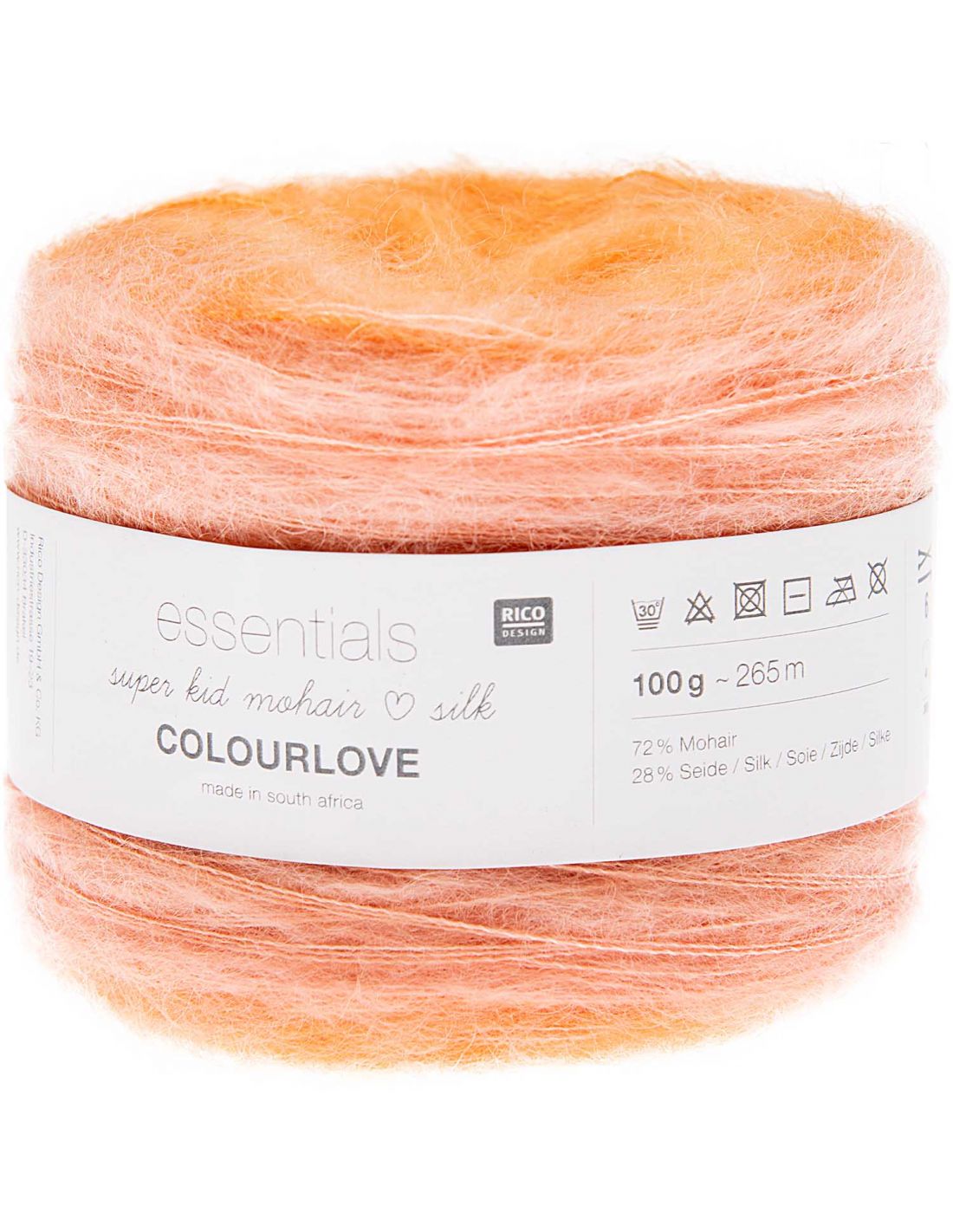 Essentials Super Kid Mohair Loves Silk Colourlove est un mélange de laine de haute qualité du Mohair Super Kid et de soie aux coloris dégradés. Cette fine laine aussi douce que légèr est particulièrement appréciée pour la confection de pièces légères et aérées.