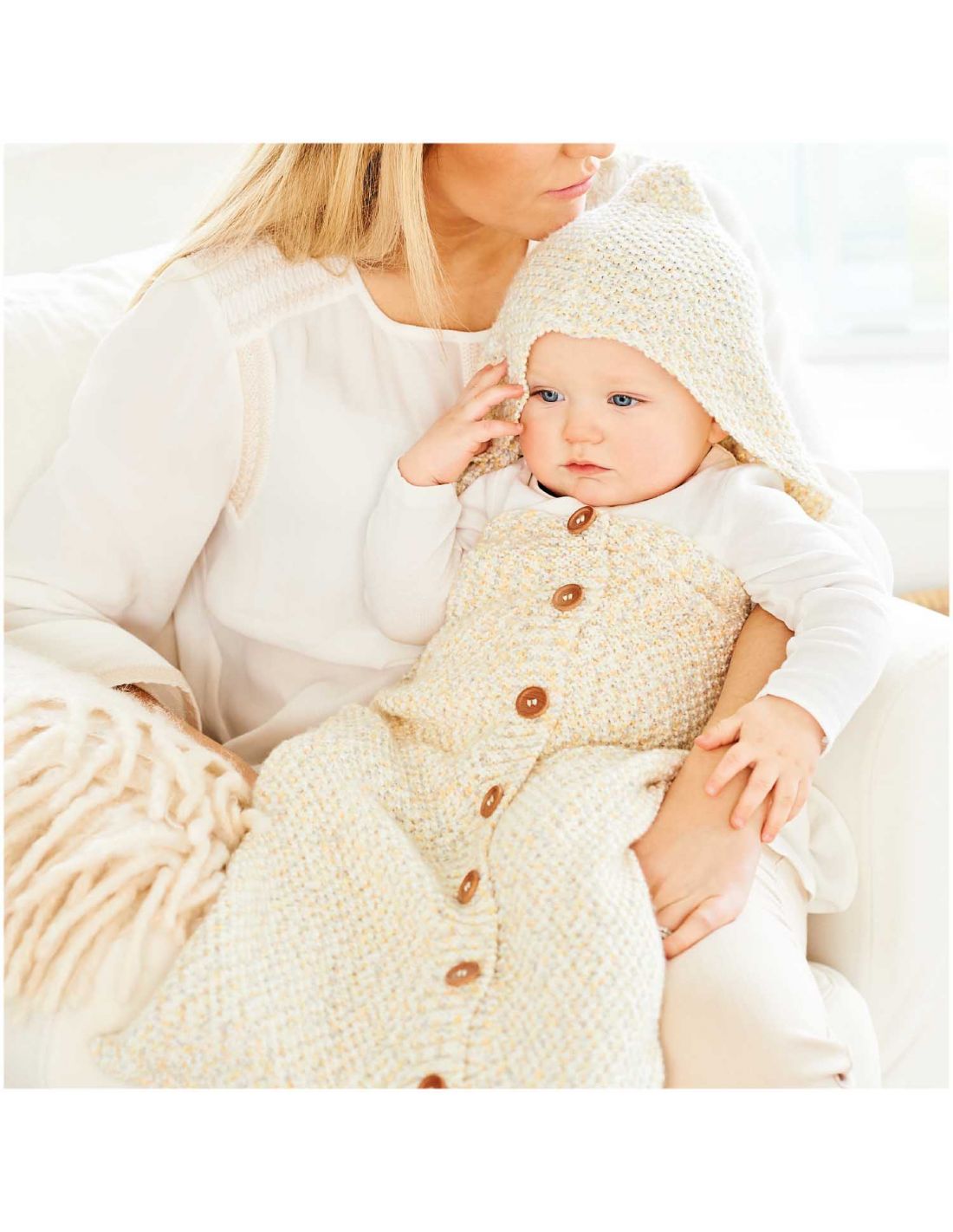- Echantillon point de base : 22 m et 28 rg pour tricoter un carré de 10cm de coté