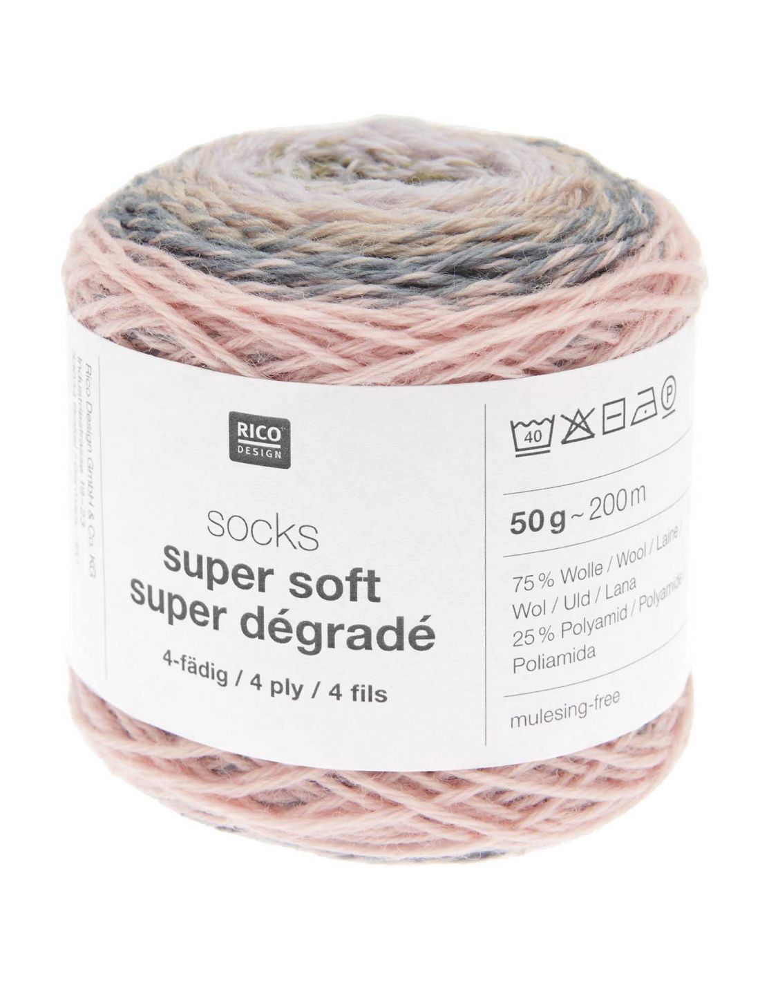 Pelote Rico socks super soft super dégradé 4 fils dusty
