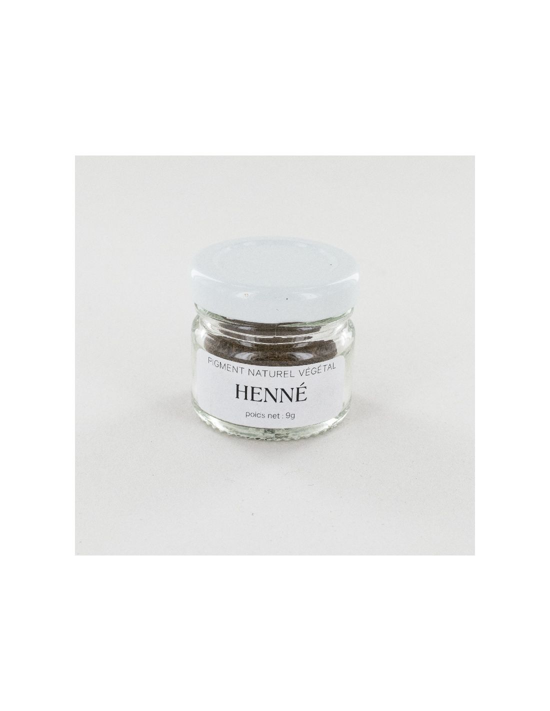 Pot de 9g d'extrait de Hénné, un pigment naturel extrait de la plante du même nom.