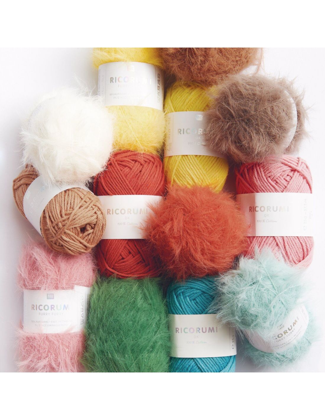 Le nouveau cahier Ricorumi "Furry Animals" nous entraîne dans un monde animal enchanteur et présente la nouveauté Ricorumi Furry Furry en combinaison avec le fil de coton éprouvé Ricorumi dk. Grâce aux couleurs parfaitement assorties, le fil d'accompagnement moelleux se travaille sans peine avec le fil uni. Pour les modèles présentés, le fil d'accompagnement en fourrure est, selon le design, soit crocheté avec le fil, soit volontairement omis. On obtient ainsi différentes textures qui confèrent aux amigurumis un look unique et irrésistiblement mignon.