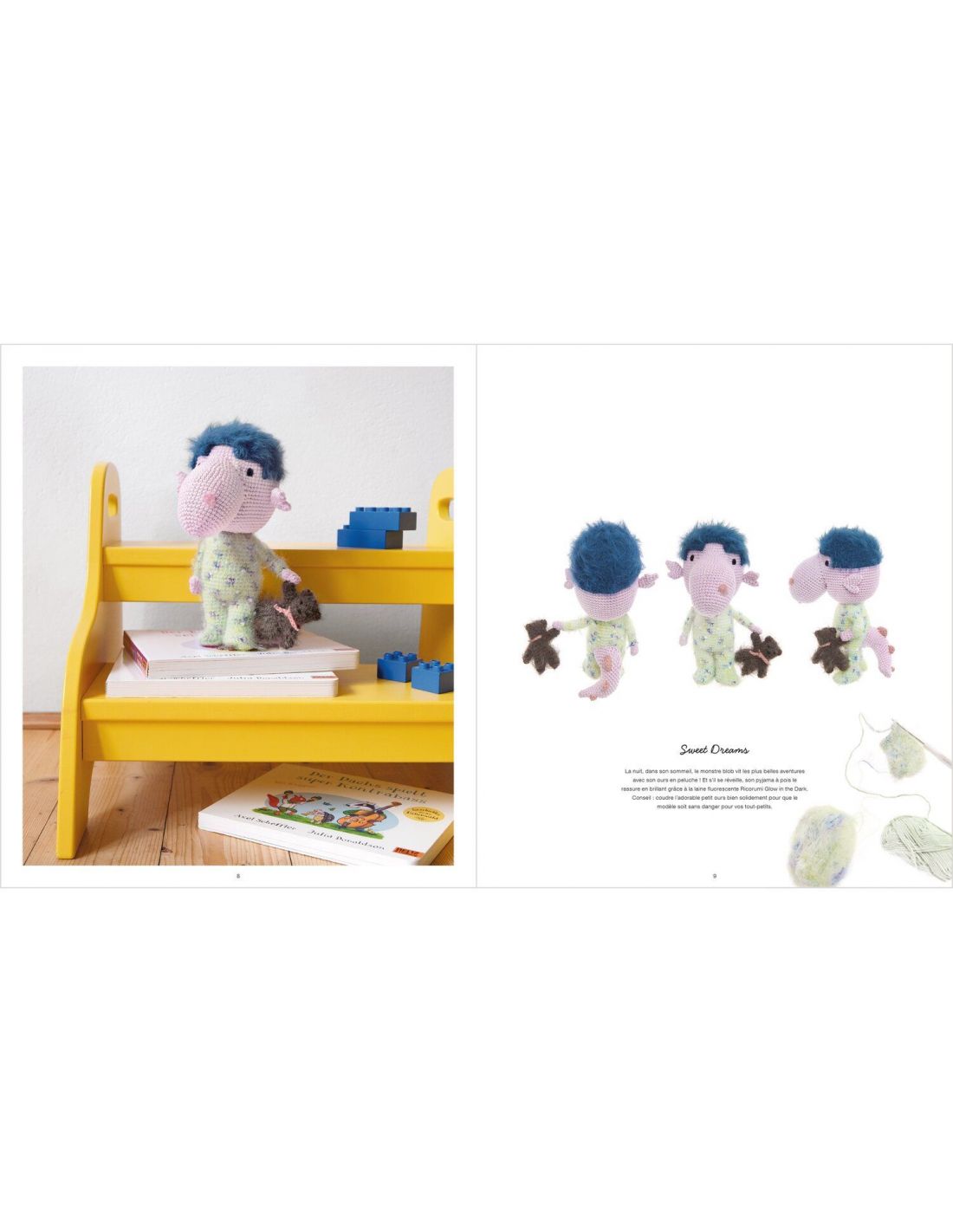 La publication « Monsters Under My Bed » présente dix modèles fantaisistes au crochet qui donnent naissance à un petit monde peuplé de monstres originaux et de créatures espiègles. La réalisation des personnages est expliquée étape par étape, la combinaison de différents fils Ricorumi – Ricorumi dk, Furry Furry, Furry Furry Print, Neon dk et Glow In The Dark – conférant aux modèles différentes structures et effets.