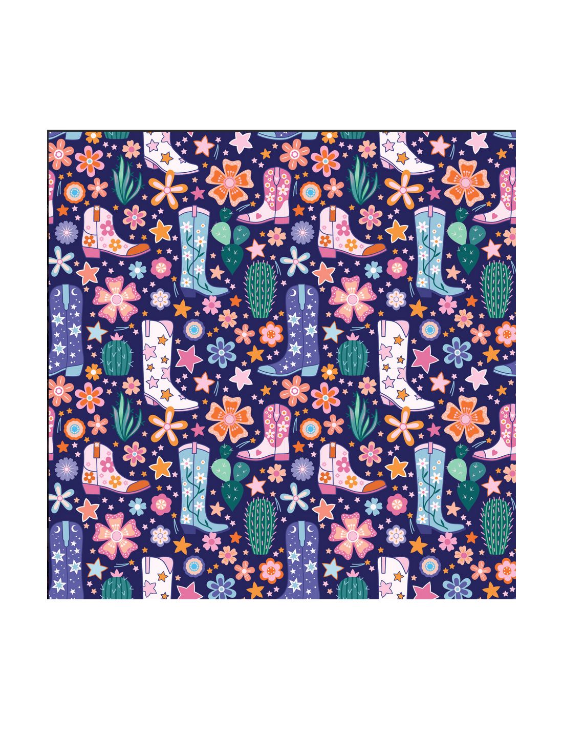 La collection Cosmic Cowboy est inspiré de tout ce que la designeuse Carly Watts aime le plus, les ciels étoilés, les galaxies magiques, les chevaux sauvages qui galopent librement, les jolies fleurs et plantes, les santiags vintage et les cactus ... le tout avec une petite touche de rétro.