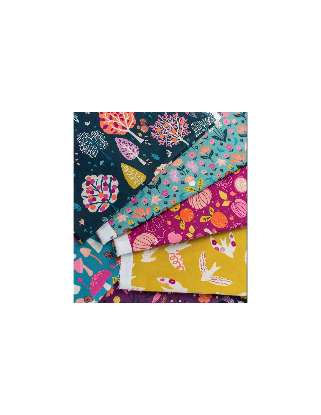Échappez-vous dans un monde automnal avec ces charmants imprimés composés d'oiseaux volant, d'écureuils dansant et de jolies fleurs sauvages dans de belles nuances riches et naturelles.